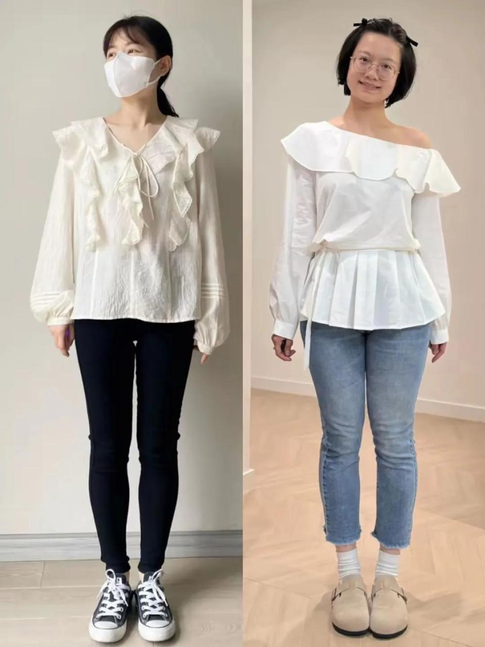 有的衣服设计有点画蛇添足,多此一举的感觉,下面这两件衬衫上衣就是这种情况,衬衫上衣加上了“木耳边”的设计,设计师的本意应该是想做的甜美可爱一些,但是面料过于廉价,设计过于繁琐,穿在身上之后根本达不到理想的效果。