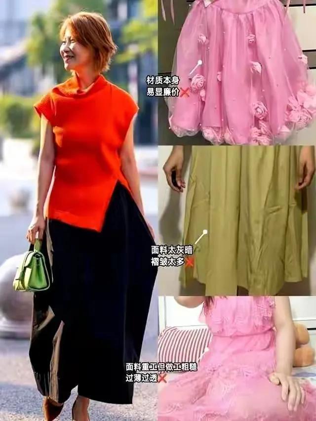 如果你的衣服版型本身就已经不合身了,在衣服的材质上也没有选对,例如下面右边的这一条粉色裙子是属于薄纱的面料,这种材质本身容易显得廉价。