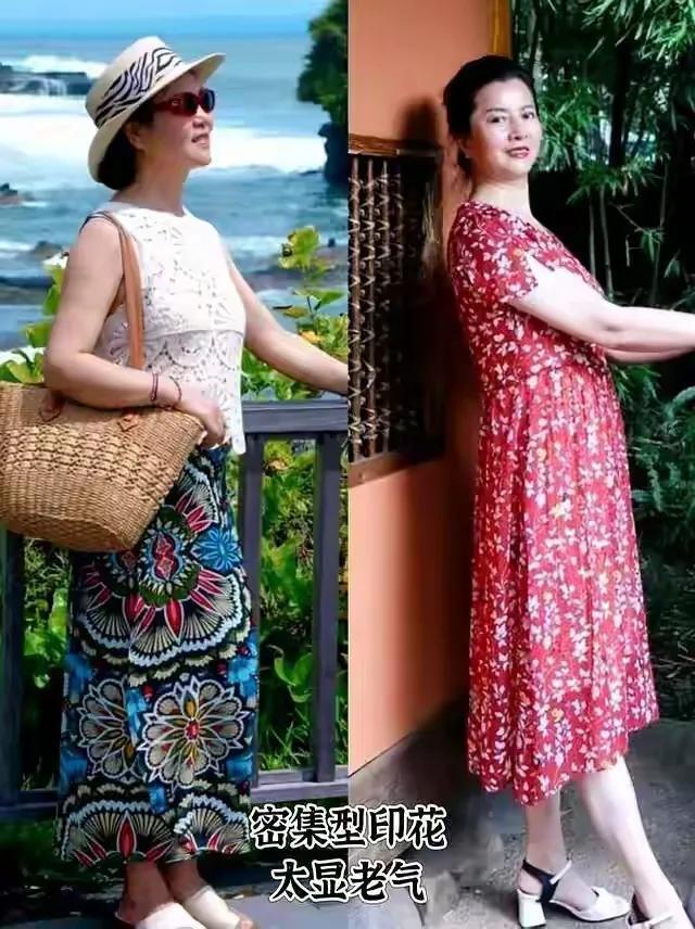 有的时候想要变得更加精致,但是,选择像下面这样密集型印花连衣裙和半身裙,穿出来的效果并不好看,有点显老显土气。